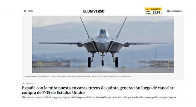El Universo, İspanya Hava ve Uzay Kuvvetleri’nin 2030’dan itibaren envanterine girmesi planlanan KAAN savaş uçaklarını satın almayı değerlendirdiğini yazdı. Haberde, “Türkiye, KAAN projesiyle F-16’ların yerini alacak hava üstünlüğü sağlayan bir savaş uçağı üretmeyi hedefliyor” ifadeleri yer aldı.